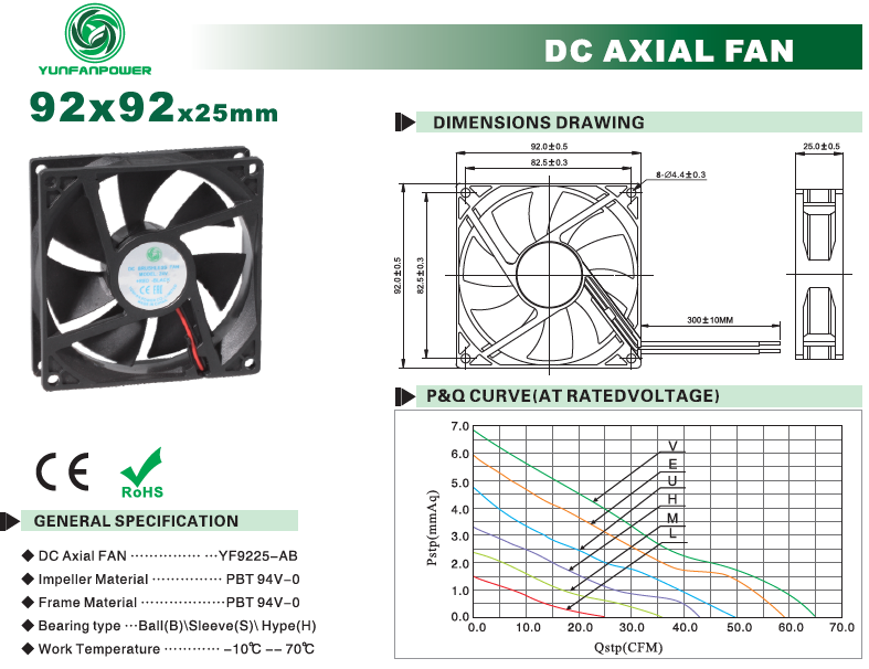 | Modello YFD9225B12U | 5 | 0,3 | 3.6 | 3200 | 1.41 | 4.76 | 37.4 | ||