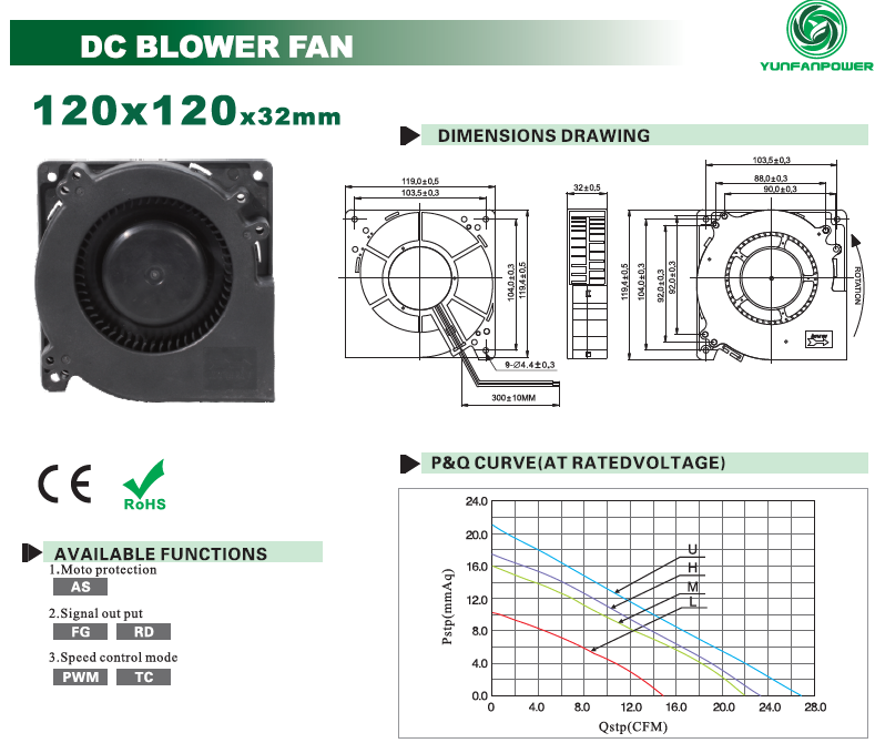 Modello YFB12032S12L Manica 12 5 0,45 5.4 2100 0,42 10.32 41.1